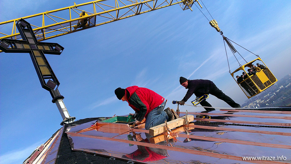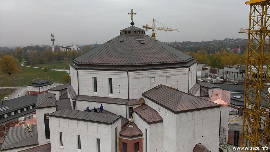 Krwistoczerwone i bursztynowe szkło artystyczne wypełnia metalową konstrukcję krzyży znajdujących się na dachu kościoła i wieży Centrum Jana Pawła II "Nie lękajcie się" w Krakowie. Szkła wykonane zostały jako barwione w masie bryły o grubości 10 cm. Zdjęcia pokazują budynek Centrum, montaż krzyży, gotowe do montażu szkło, a na końcu kilka scen z wykonywania szkieł.