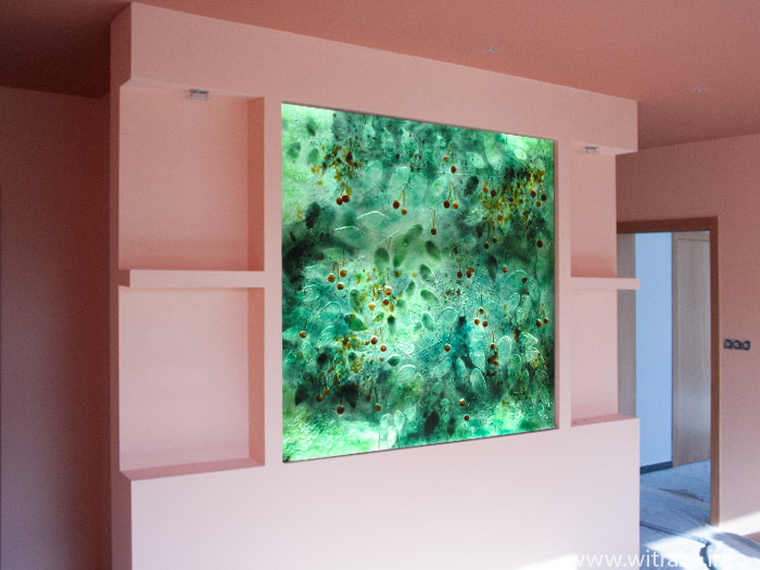 Więcej w tej kategorii: « Okładzina szklana ściany - szkło artystyczne z motywem roślinnym Ściana szklana, barwna, szkło artystyczne z motywami antycznymi »