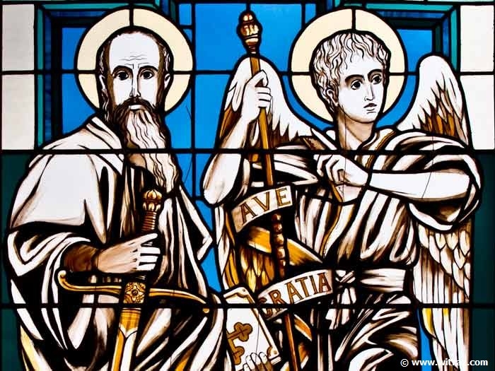 Witraże te powstały według projektu przesłanego nam z Hiszpanii. Realizacji witraży podjął się Paweł Przyrowski, który miał trudne zadanie zinterpretowania projektu otrzymanego w formie skanu rysunku wykonanego pastelami.
